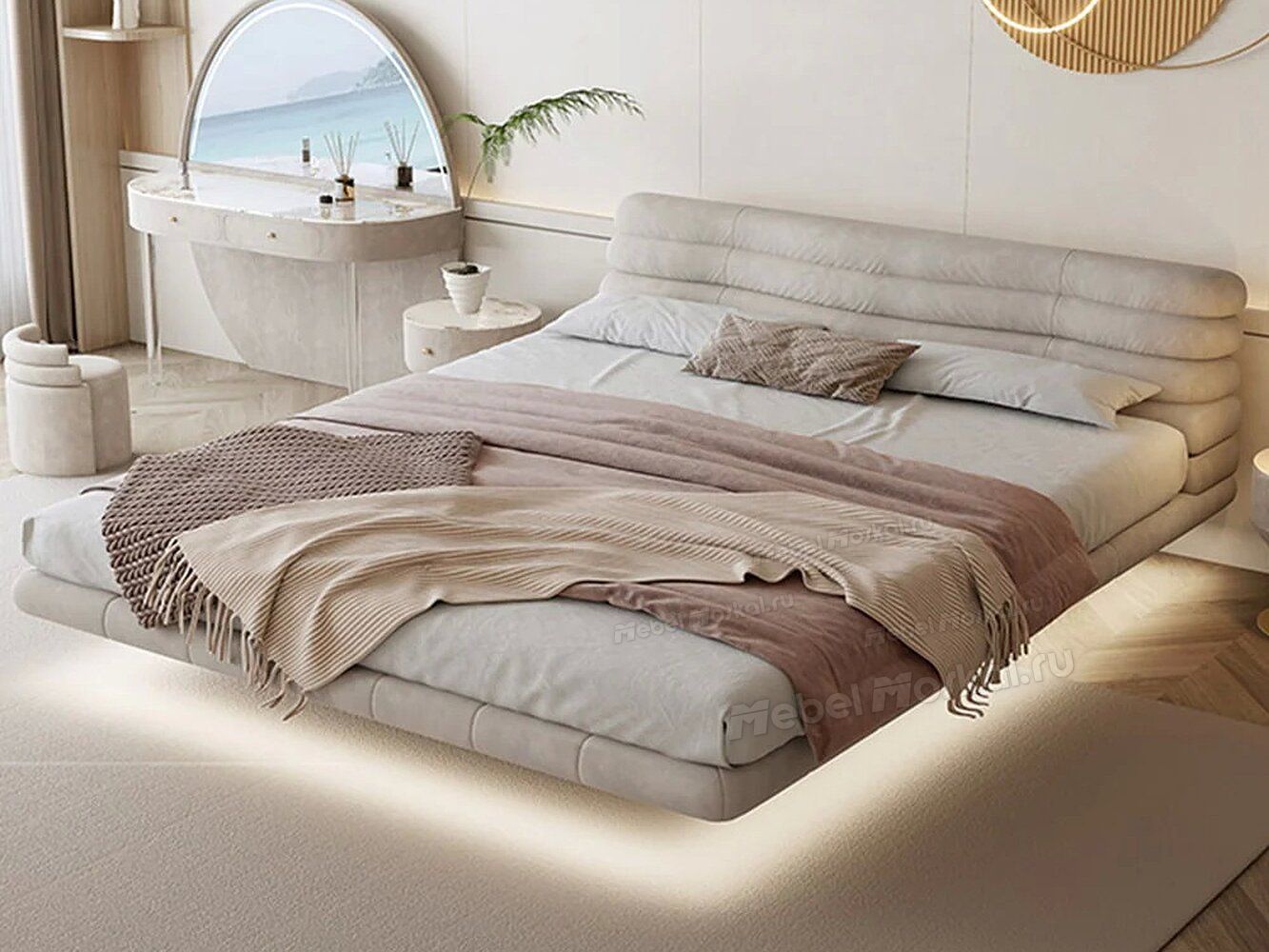Умопомрачительная мягкость, парящая над полом. Эта кровать — воплощение нежности и комфорта. Она снимает напряжение каждого мускула, даря чувство, будто вы спите на пушистом облаке в небесах.